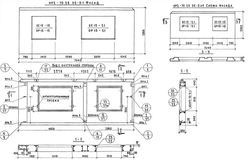 НР2-70.29.35-5-1   Наружная стеновая панель рядовая по Серии 1.132-1.