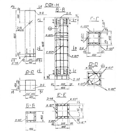 СФ 1 Стойки фундаментов Серия 3.407-115.
